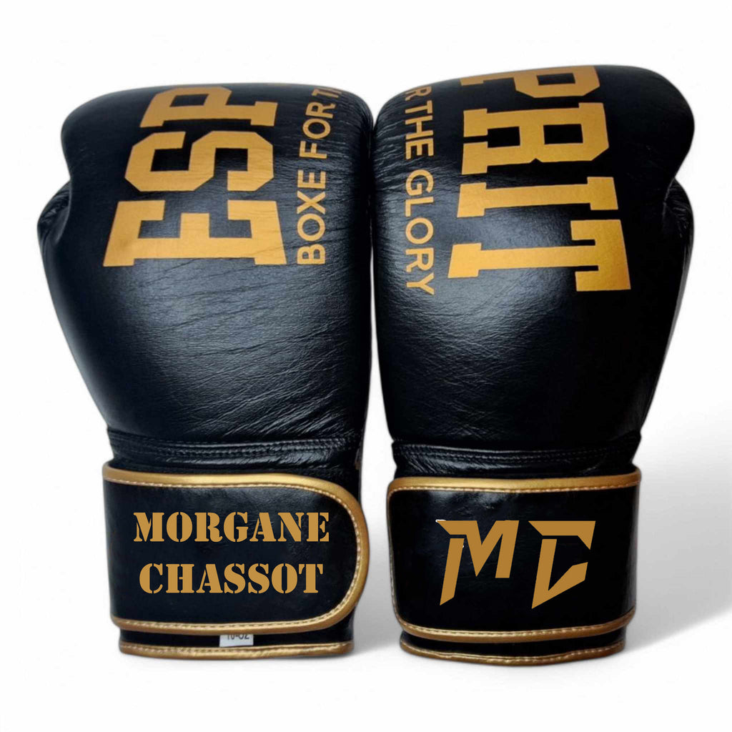 Esprit Boxe propose des gants de boxe entièrement personnalisés pour les clubs. Gants d'excellente qualité, en cuir véritable, couleur, inscription et logo selon vos souhaits !