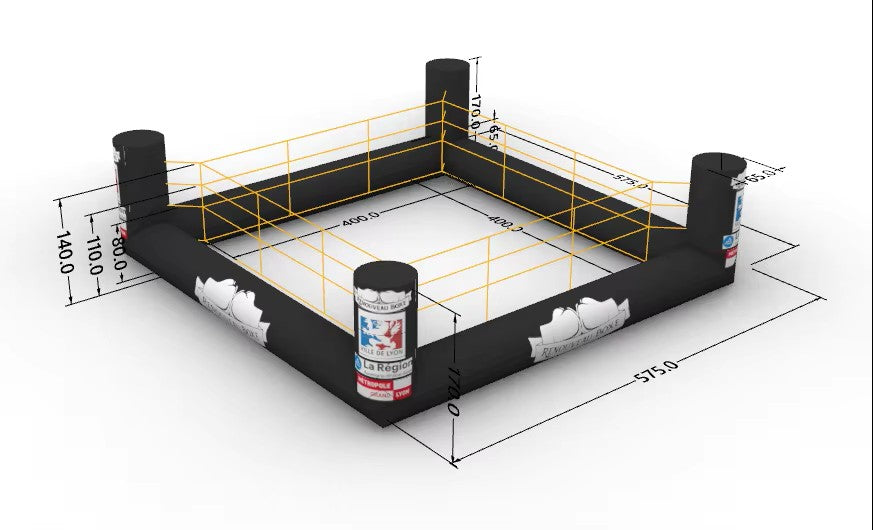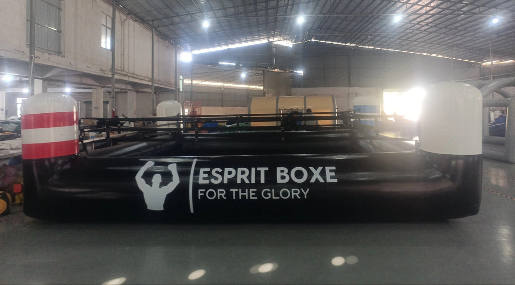 Ring de boxe gonflable pour adultes et enfants. Gonflage du ring en 2 minutes avec soufflerie intégrée. Matériel idéal pour promouvoir le sport auprès des plus jeunes lors d'évènements extérieurs (gala, fête, animation scolaire etc.). Inscription de votre logo au choix du client.