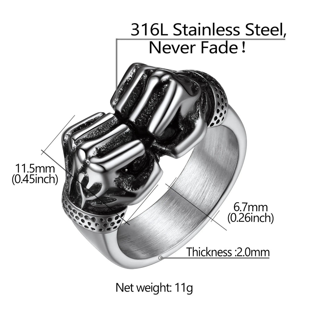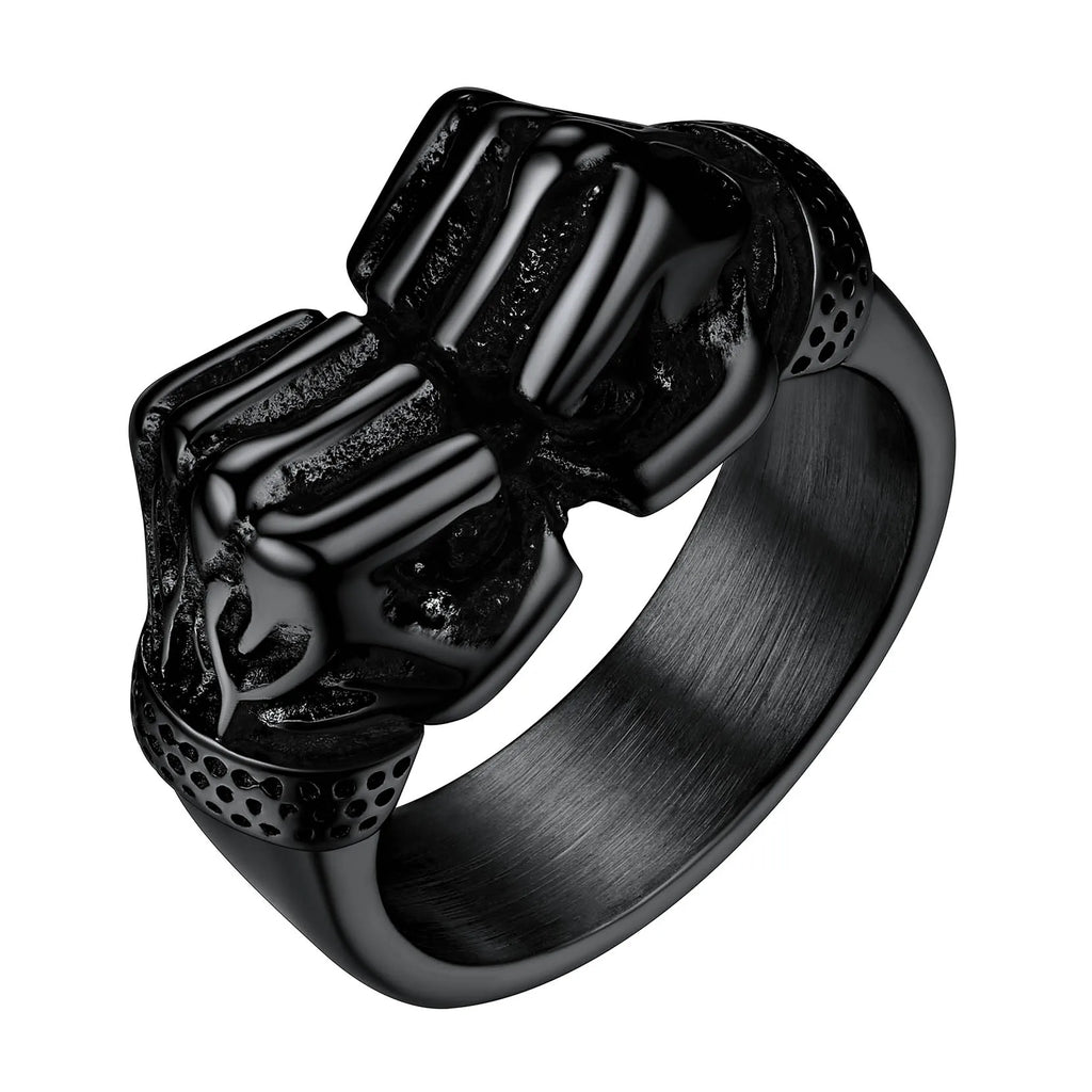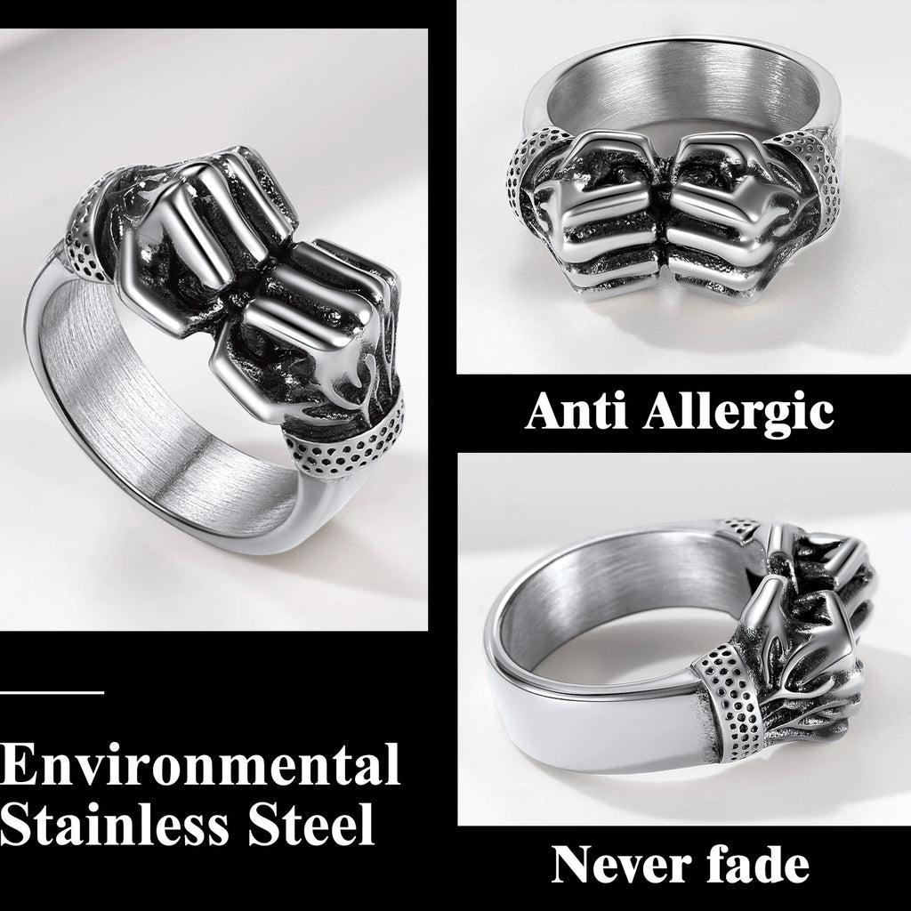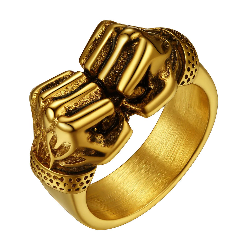 Bague double poings, bijou de qualité supérieure, finition très soignée, en acier inoxydable, couleur or, argent, ou noir. Bijou élégant, idée cadeau géniale pour votre partenaire. Collection 2026.