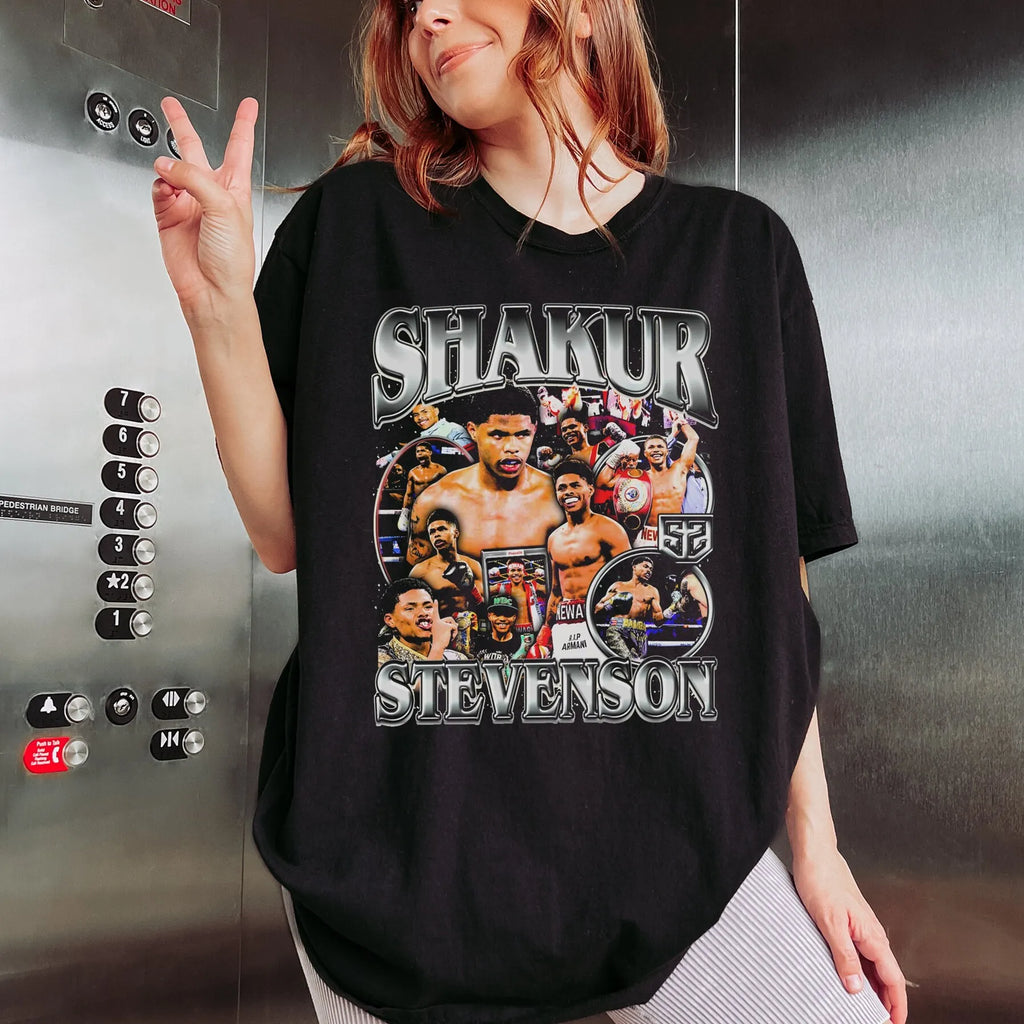 Devenez une partie de la légende avec ce t-shirt de boxe Shakur Stevenson, destiné aux vrais passionnés du Noble Art. Coaché par le GOAT Terence Crawford en personne !
