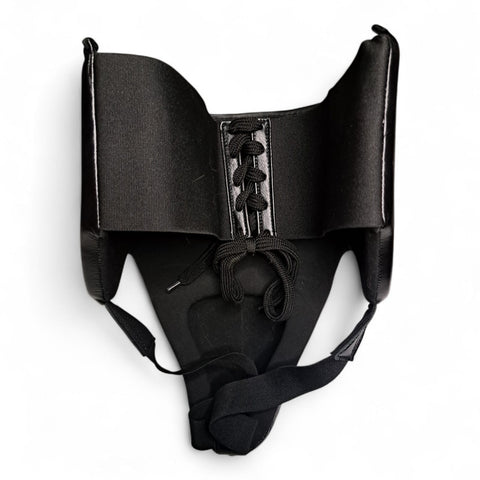 Coquille de protection Esprit Boxe, couleur noire. Ceinture en cuir, mousse haute densité premium, flexibilité maximale avec la partie élastique à l'arrière.
